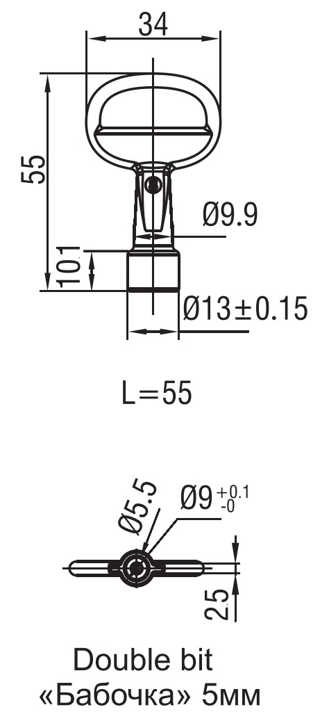 Ключ MS 01 открывает замки с сердечником "бабочка" с центральной выпуклостью 3мм, 4мм и 5мм.