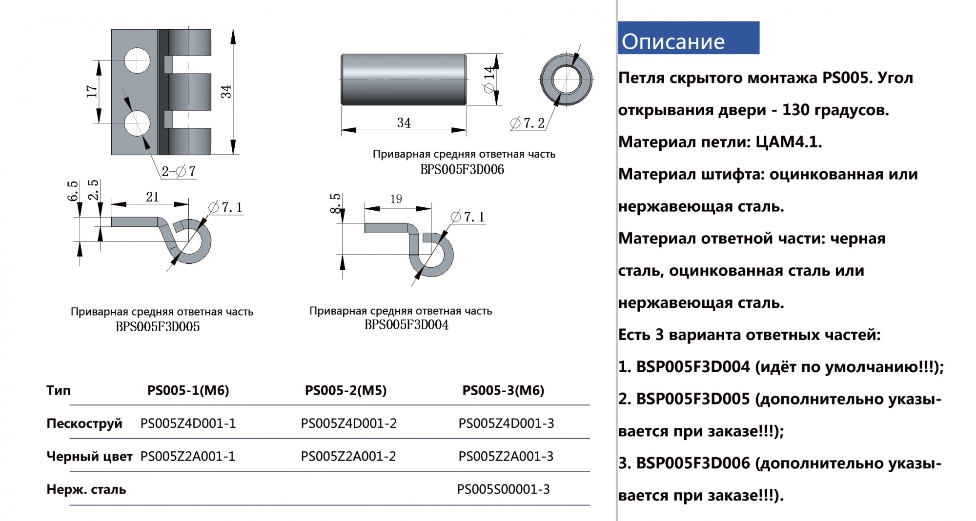 Главная Интернет-магазин Фурнитура Петли Петли скрытого монтажа Петля PS-005-MS (оцинкованная сталь)
