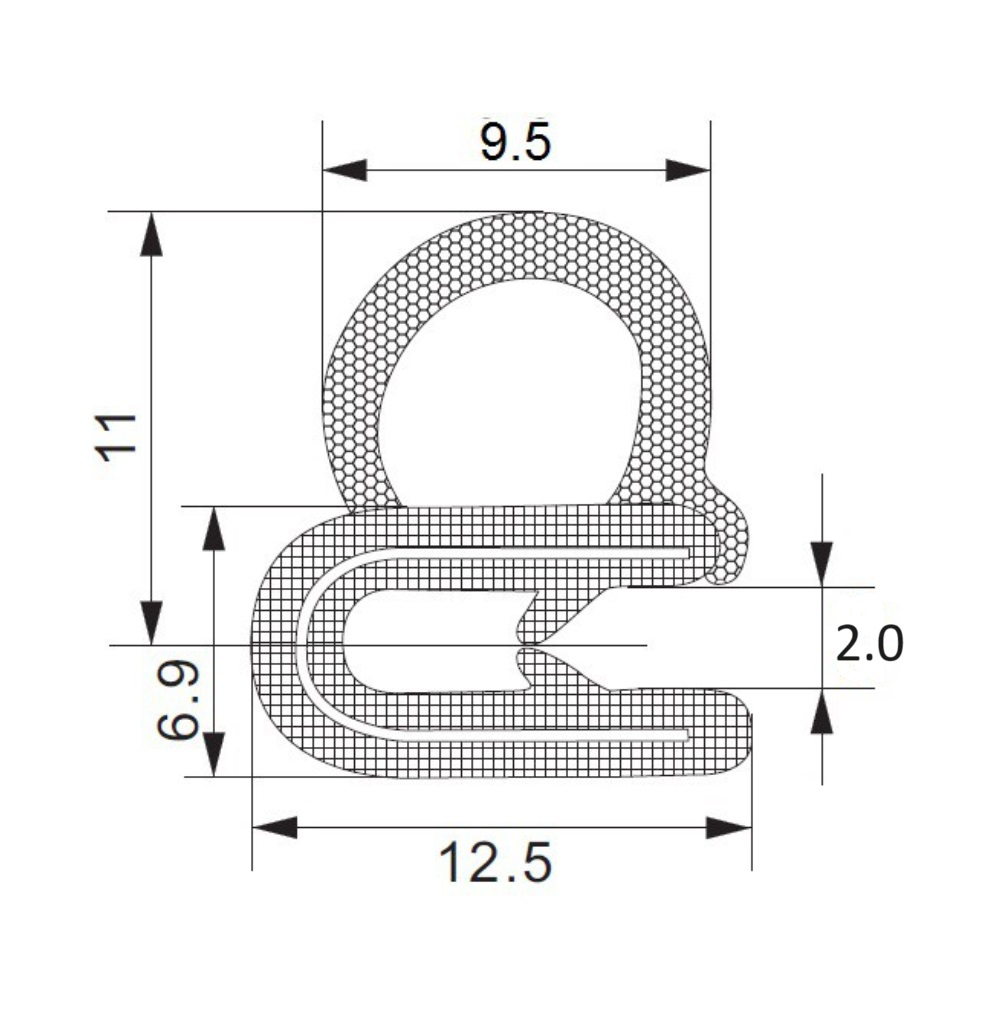 Уплотнитель идеально подходит для толщины металла: 1-2 мм. Температура использования: от -40 до +80 °С.