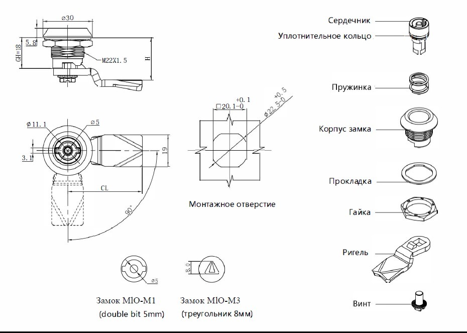 Длина корпуса замка - 18мм.