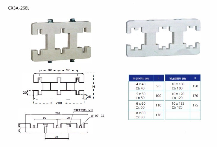 Шинодержатель CX3A-268L, предназначены для закрепления плоских токоведущих шин в электроустановках различного назначения и организации шинных трасс.